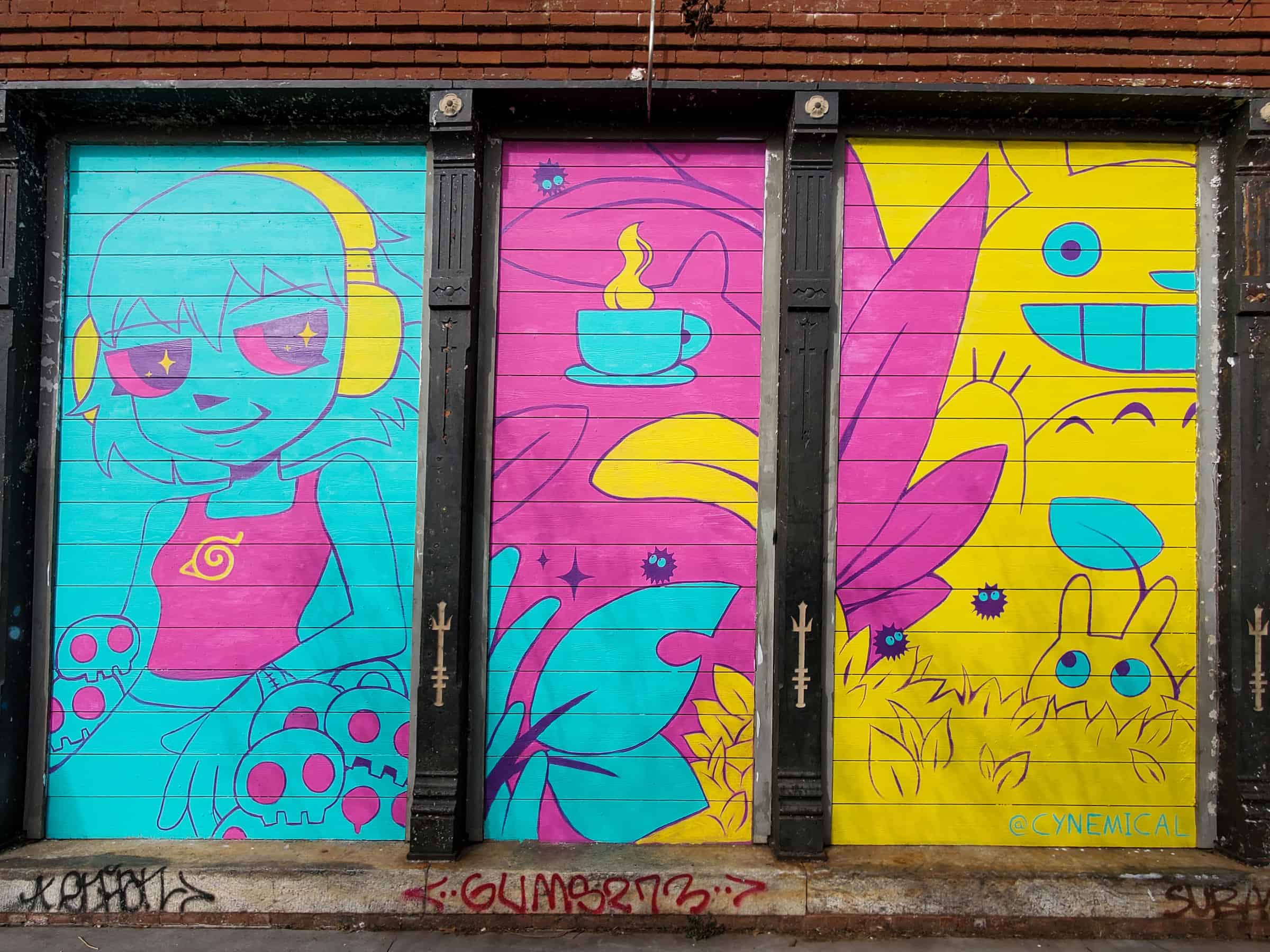 Whenever a mural goes away, I remove it from its map. Then I move it into this archive, preserving it for history. Tabs on this page indicate years. I list vanished street art by the year it went away. Sometimes I can’t determine a mural’s actual year of disappearance. In this case, I list the mural according to the year that I find out about its disappearance. Sometimes I can’t determine the year a mural was painted. In this case, I date the mural according to the first evidence I can find of the mural’s existence and the “?” in the date means “or before.” Please go to the Maps page of this website to see all of Atlanta’s current murals.